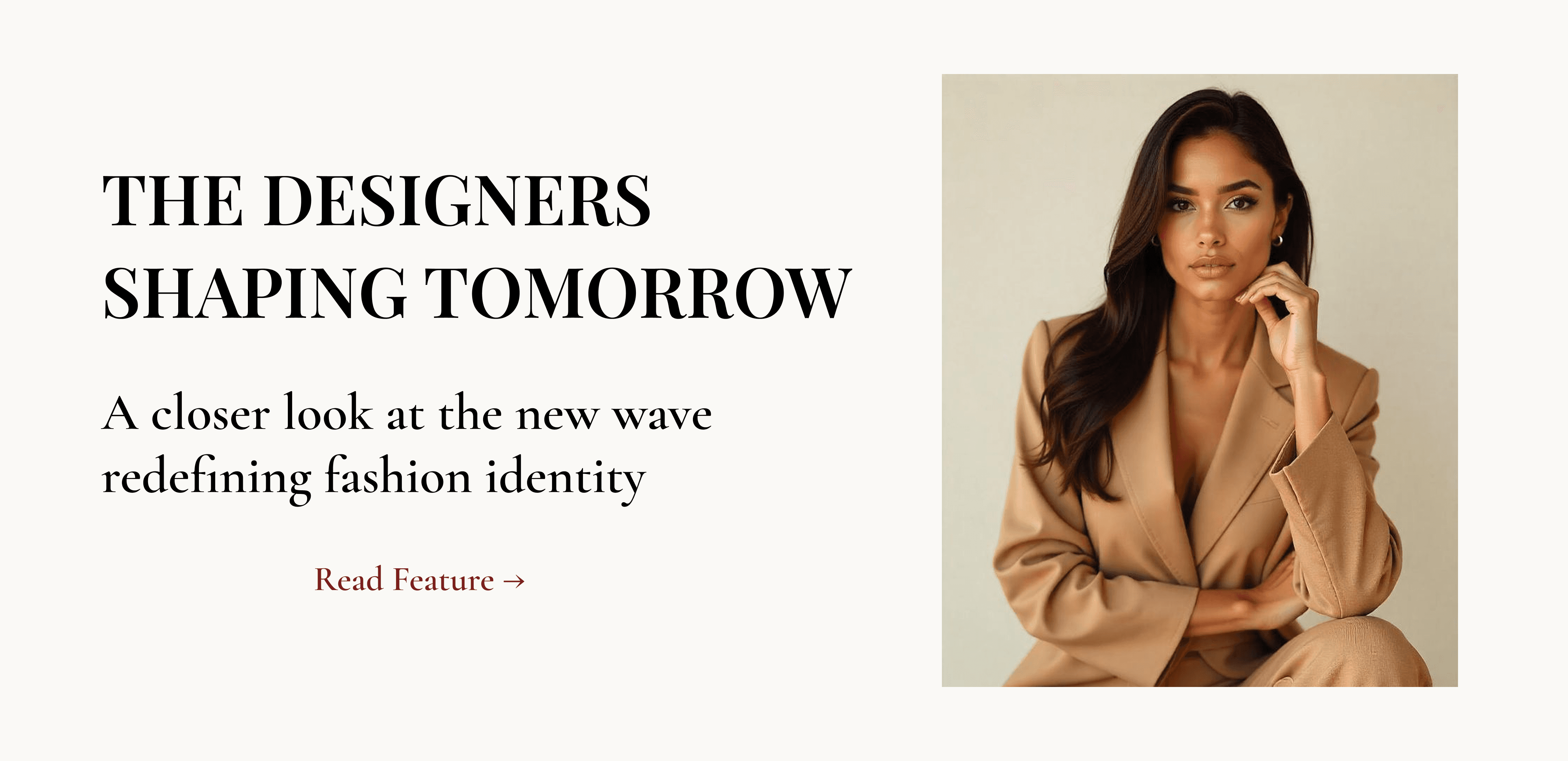 The section highlights a featured campaign .The composition is intentionally dramatic, mimicking the flow of an editorial spread while maintaining digital clarity.