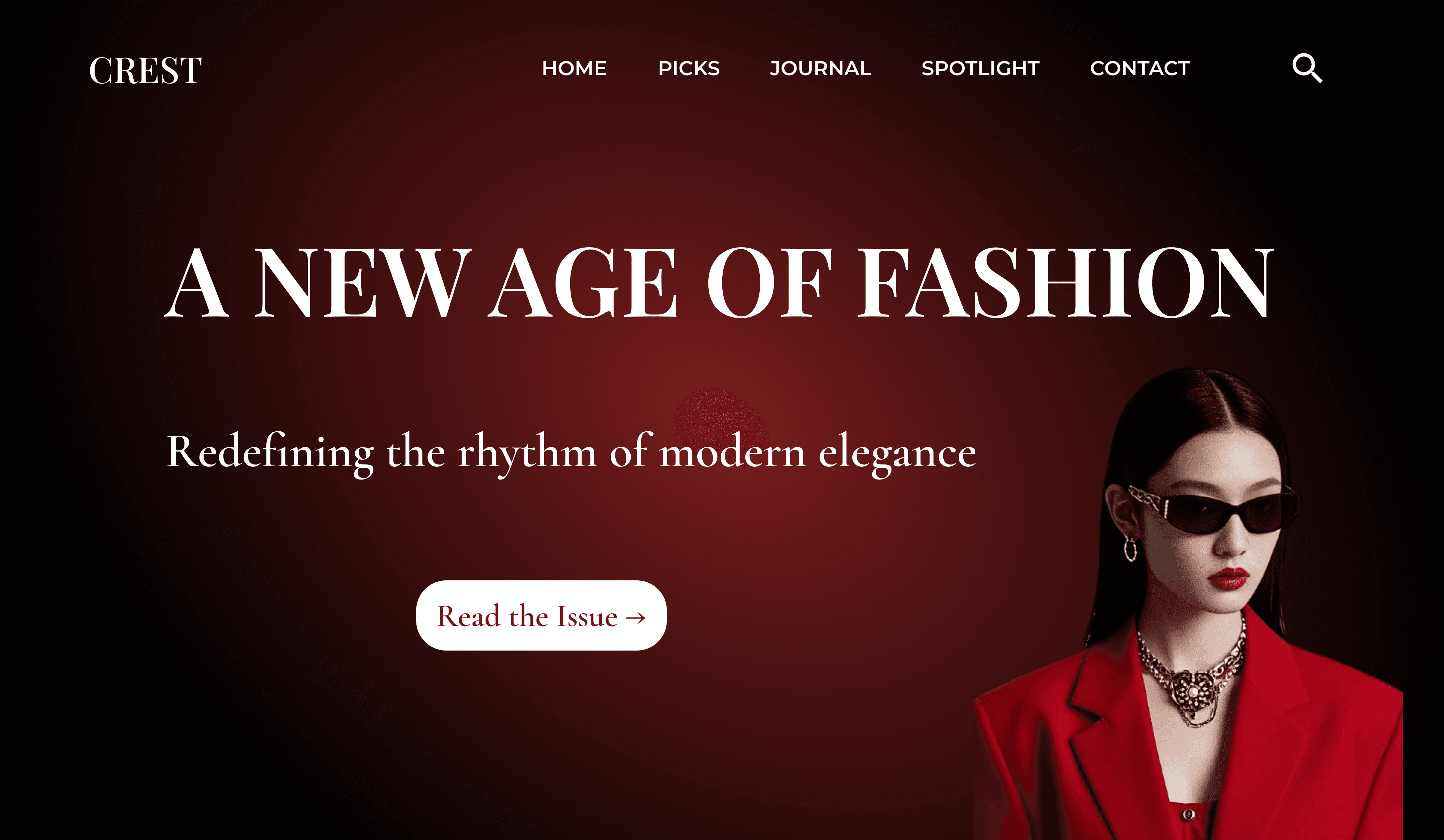 Crest is a modern editorial magazine homepage concept inspired by high-fashion publications.
